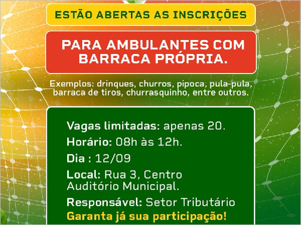 Portanto, se você é um ambulante com barraca própria e busca uma oportunidade de aumentar sua renda e visibilidade, não perca a chance de se inscrever para o Festçu. Prepare sua documentação, organize sua barraca e garanta sua participação neste evento que promete movimentar a cidade. Fique atento aos canais de comunicação da organização do evento para obter informações detalhadas sobre os prazos, requisitos e critérios de seleção.